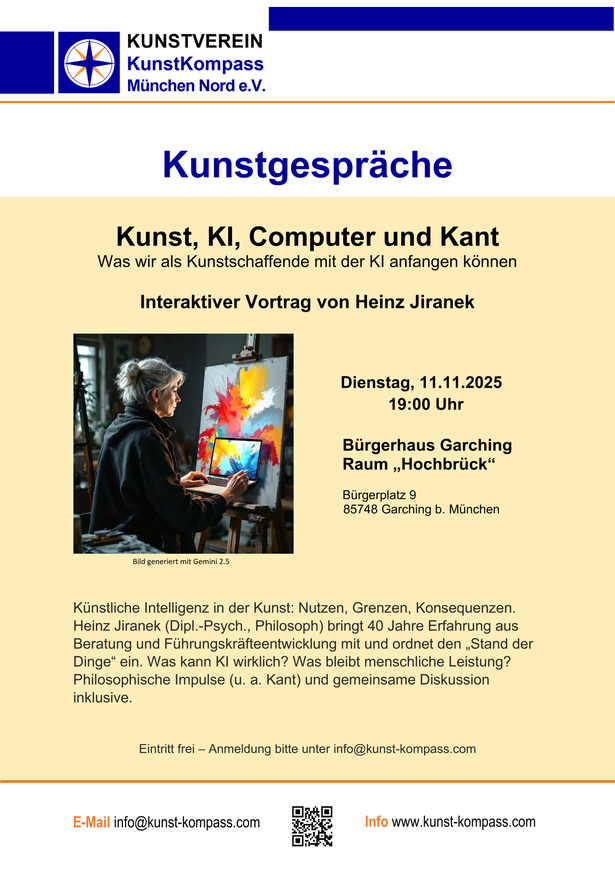 Wegen begrenzter Teilnehmeranzahl bitten wir um Voranmeldung bis 01. November 2020 per E-Mail: info@kunst-kompass.com